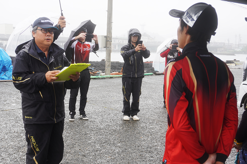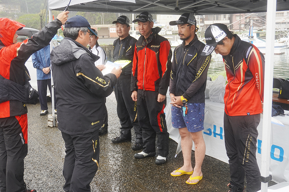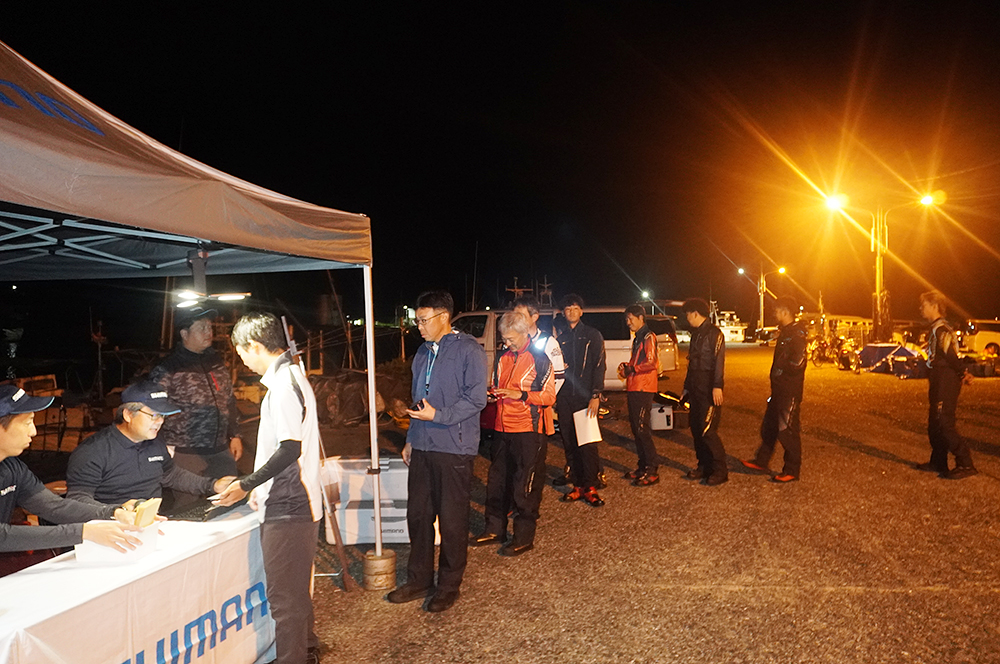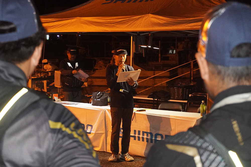 参加予定者全員の点呼が行われた後に組み合わせ抽選とルール説明等を行い、ゆき丸渡船様と川端渡船様に分かれて乗船し、5時20分の出船となりました。