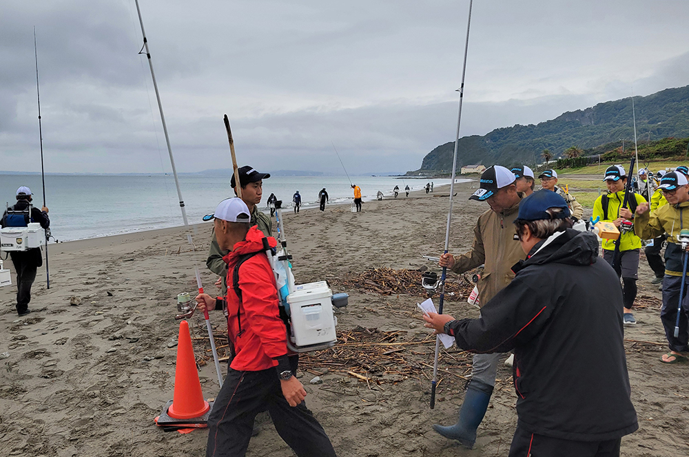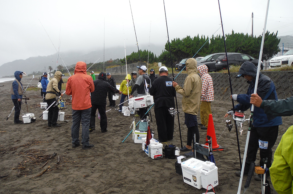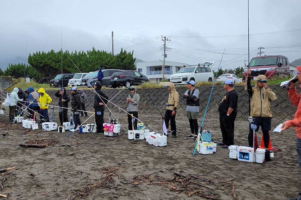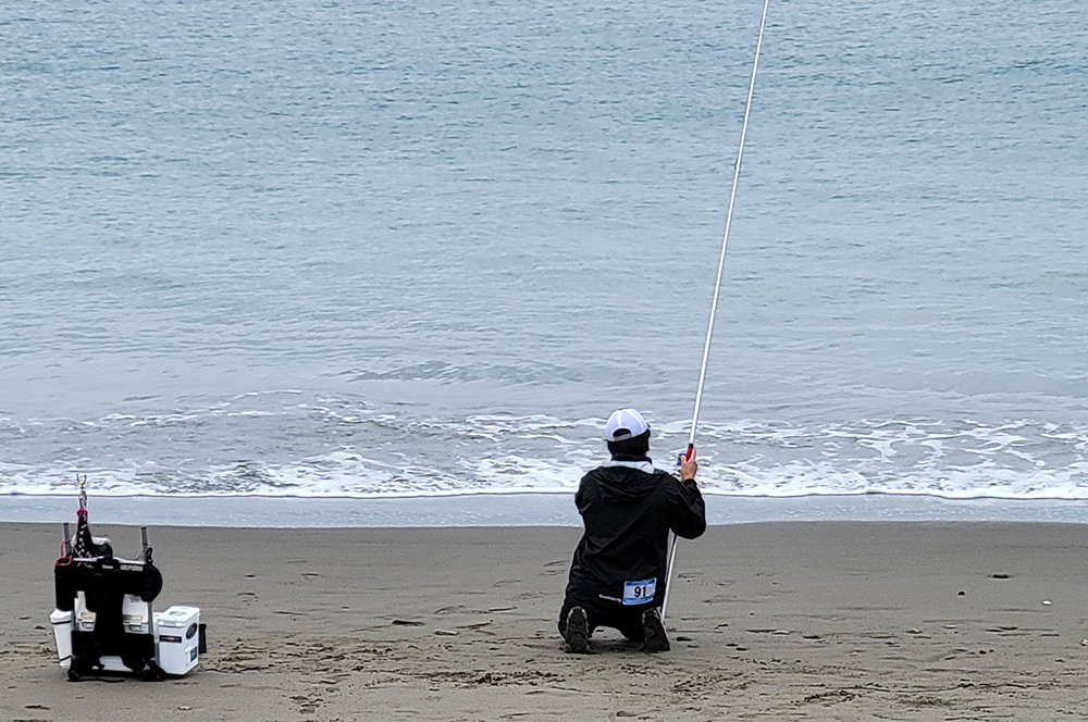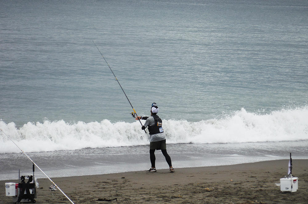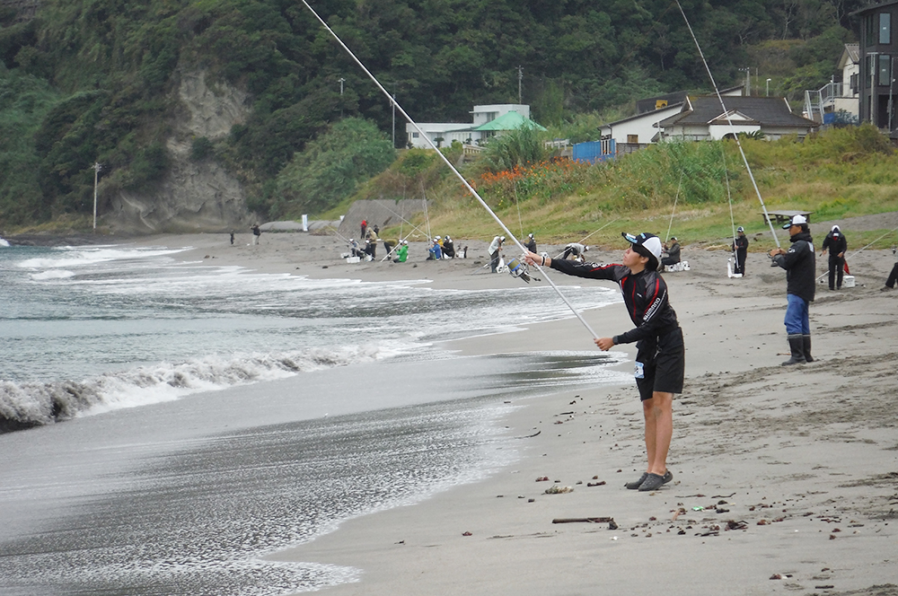 海岸左側でピンギスから中型のキスが釣れているようで、選手が集まり、鉄火場になっています。小さいながらも、7連8連と好調に釣果を上げている選手もおり、その中を見事逃げ切り、287gで大知選手が優勝されました。また、唯一の女性キャスター宗像沢美選手も見事6位に入賞され、この2人を含む7名の選手がセミファイナルの権利を獲得されました。