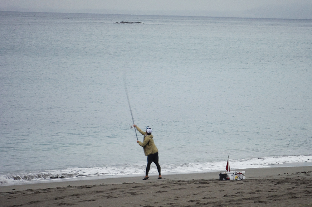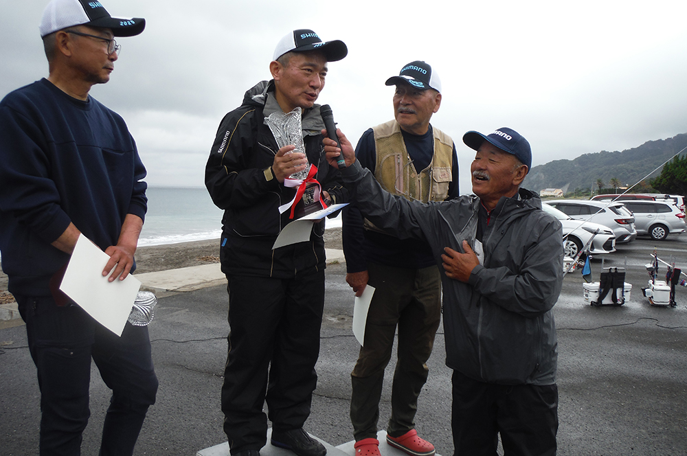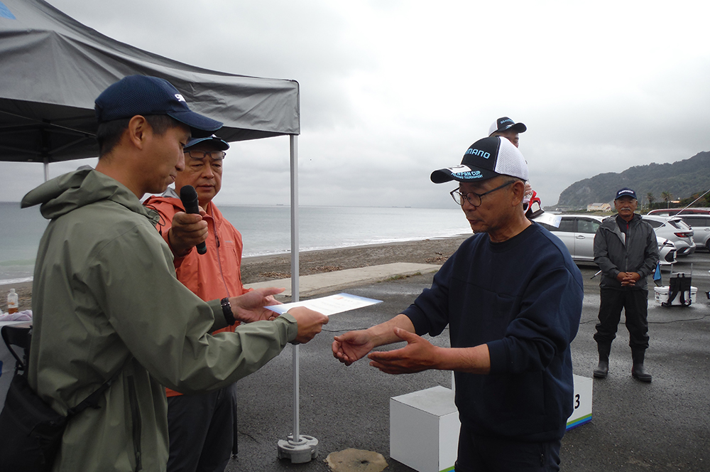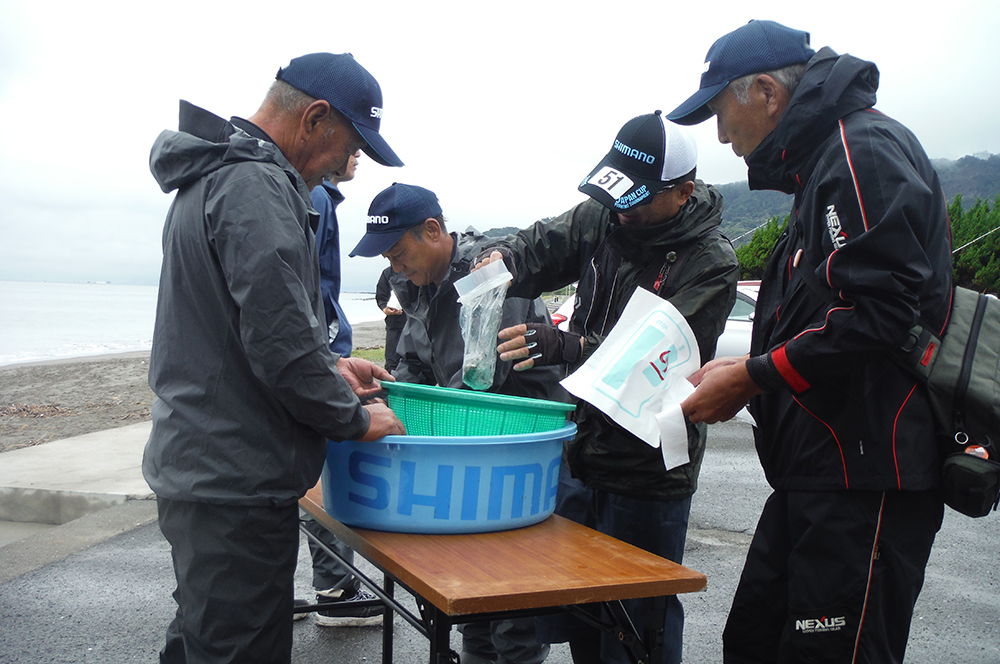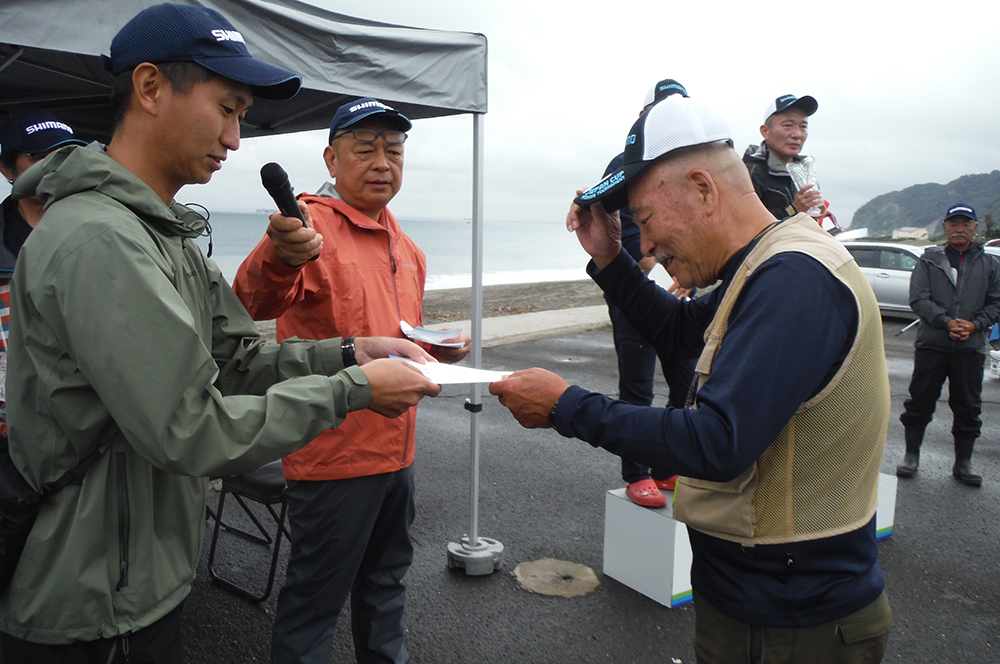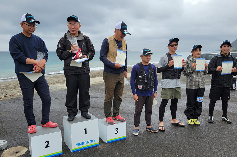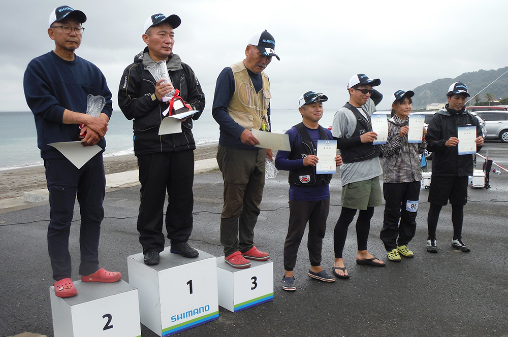 海岸左側でピンギスから中型のキスが釣れているようで、選手が集まり、鉄火場になっています。小さいながらも、7連8連と好調に釣果を上げている選手もおり、その中を見事逃げ切り、287gで大知選手が優勝されました。また、唯一の女性キャスター宗像沢美選手も見事6位に入賞され、この2人を含む7名の選手がセミファイナルの権利を獲得されました。
