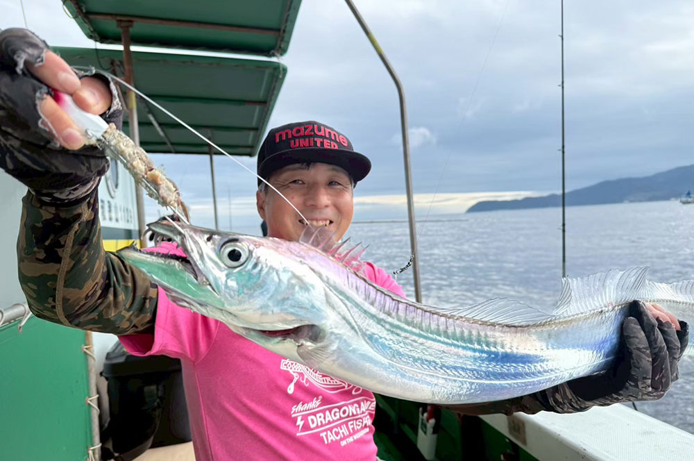 加太漁港を拠点に活躍されている三邦丸様にご協力いただき、タチウオテンヤ釣りで、タチウオ1匹の長寸を競う大会形式のイベントを開催しました。
